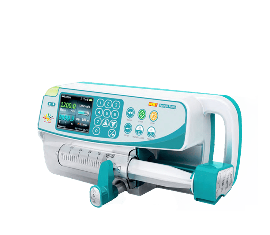 Hospital-standard infusion pumps and syringes for patients who require continuous infusion of fluids and medication.
